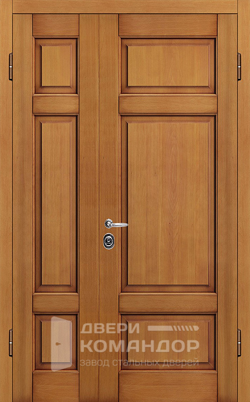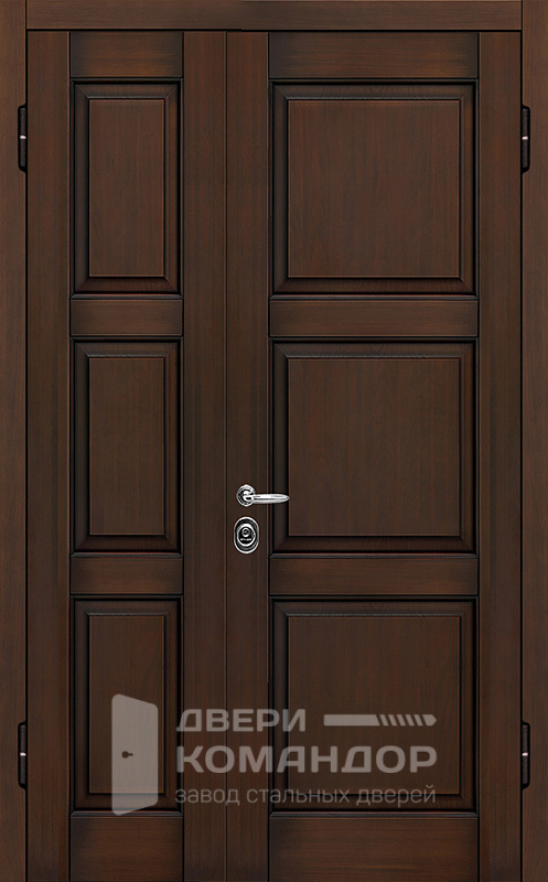 Широкая входная группа для частных домов, коттеджей, офисов и подъездов, где важны проходимость и аккуратный фасад без лишней вычурности. Обе стороны облицованы плитой МДФ под дуб в тёплом коричневом тоне: рисунок древесины выглядит солидно, поверхность стойко переносит частые касания и уборку, а под навесом служит особенно долго. Каркас и полотно из профтрубы 50×25 мм с двумя рёбрами 40×25 мм и листом стали 2 мм держат жёсткость, противосъёмные штыри Ø10 мм страхуют петли. В двустворчатой двери №11 предусмотрены два контура уплотнения E+D для снижения сквозняков, возможны левое/правое и наружное/внутреннее открывание, любые размеры. Запирание надёжное: сувальдный Просам ЗВ 8-6/1 и цилиндровый Мосрентген ЗВ 4-1, по три ригеля, класс 2. По желанию добавим стеклопакет, ковку, зеркало и видеодомофон. Двустворчатая дверь №11 по выгодной цене от производителя с бесплатной доставкой и установкой в Москве, изготовление под любой размер вашего проёма, с возможностью изменить отделку, конструкцию и комплектацию.