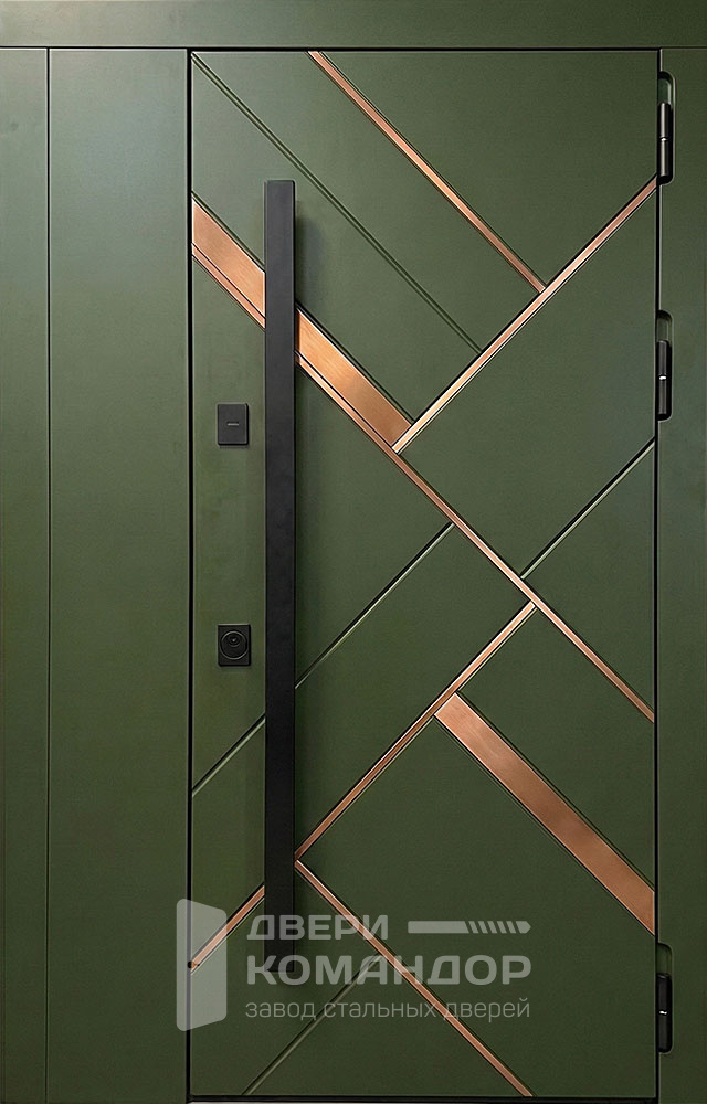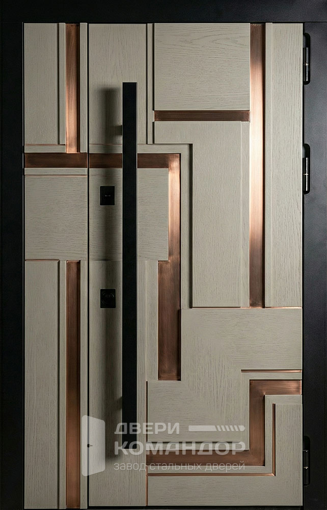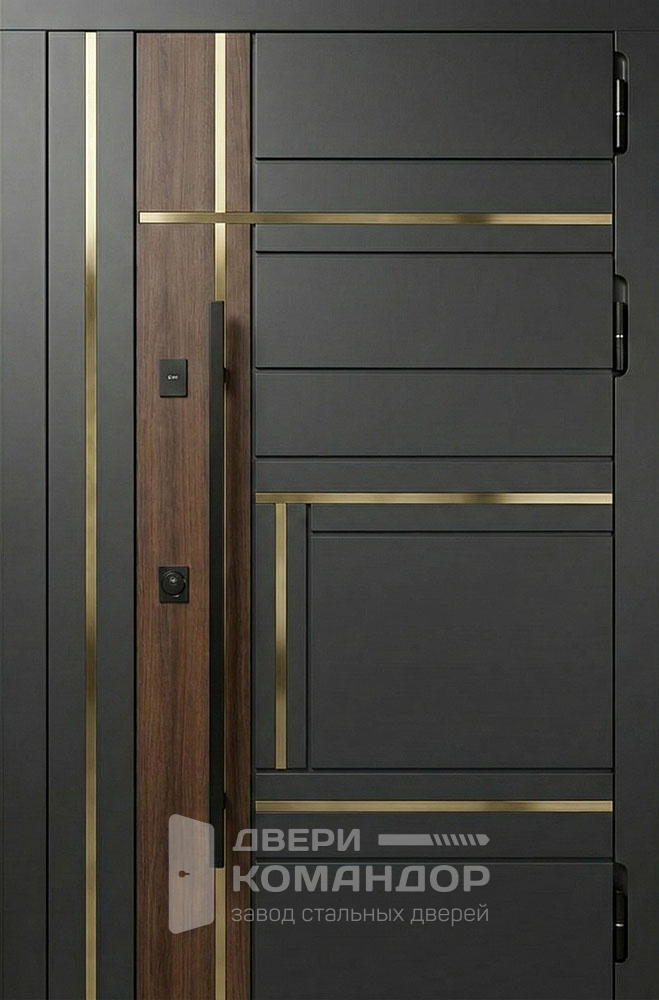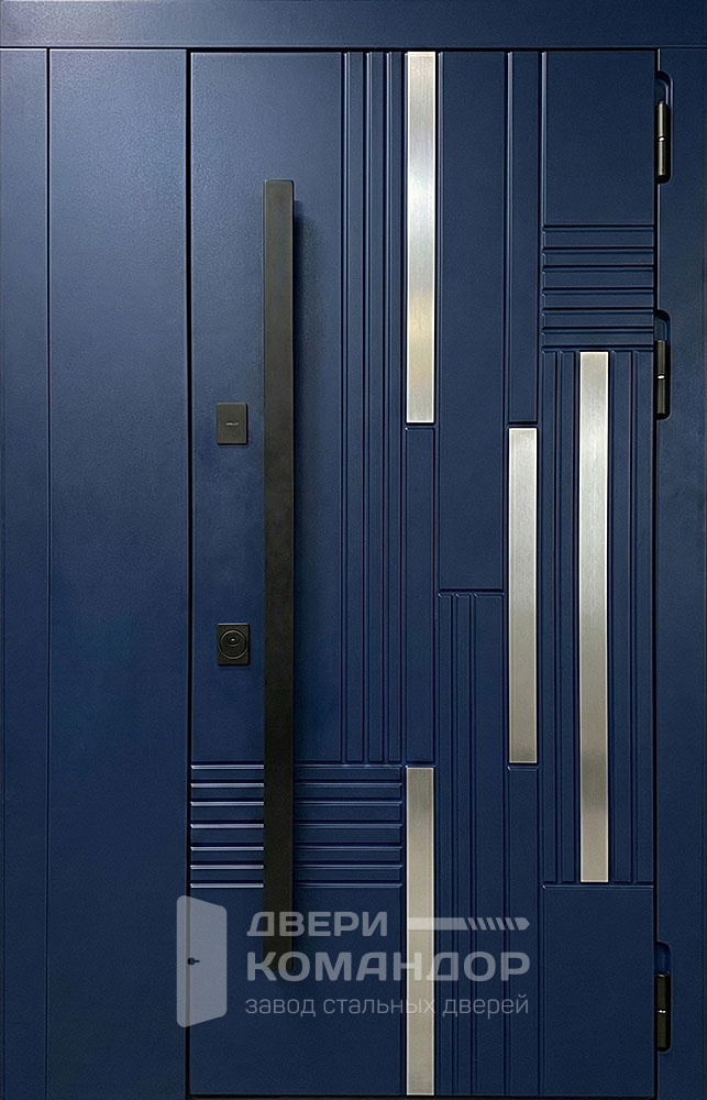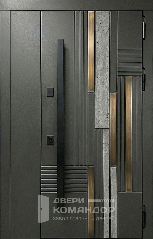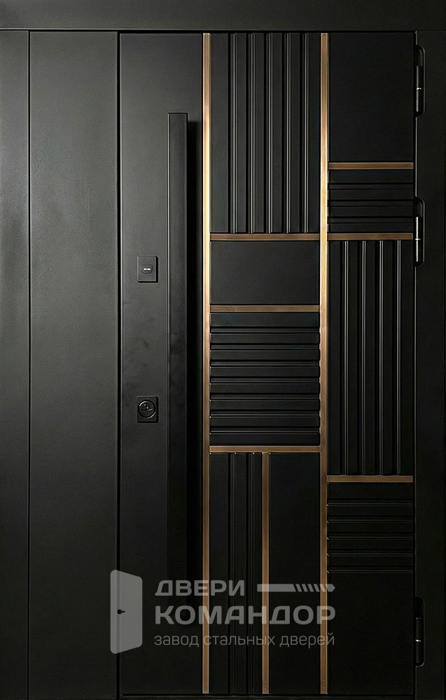 Строгая двухстворчатая композиция с графитово-чёрной палитрой и тонким горизонтальным молдингом создаёт эффект «архитектурной панели» — вход выглядит солидно и современно в частном доме, коттедже или офисе. Рельеф шагрень и матовый шелк визуально смягчают свет, маскируют отпечатки, а МДФ ПВХ с обеих сторон даёт износостойкую, легко моющуюся поверхность, устойчивую к мелким царапинам и выцветанию; доступны тёмные оттенки, графит и глубокий чёрный. У двери входной двухстворчатой металлической №31 силовой контур выполнен из профиля 50×25 мм с листом холоднокатаной стали 2–5 мм, предусмотрены два ребра жёсткости и противосъёмные штыри Ø10. Два контура уплотнения E+D снижают продувание и уличный шум; тип и направление открывания, размеры и фурнитуру подберём под ваш проём и стиль фасада. Дверь входная двухстворчатая металлическая №31 по выгодной цене от производителя с бесплатной доставкой и установкой в Москве, изготовление под любой размер вашего проёма, с возможностью изменить отделку, конструкцию и комплектацию.