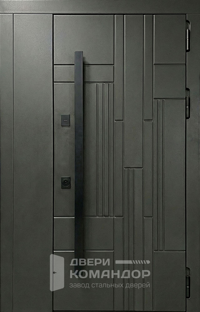 Эта дверь берёт не кружевами, а дисциплиной: тёмный графит, ровная геометрия и высокая ручка-скоба делают вход строгим и визуально дорогим уже с порога.