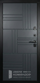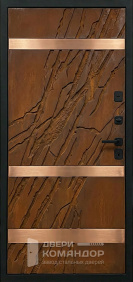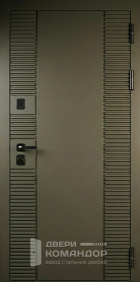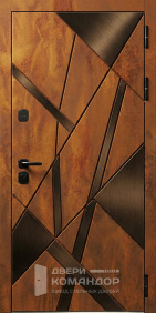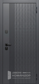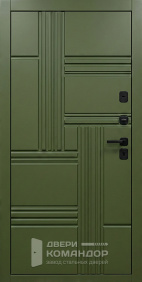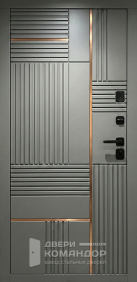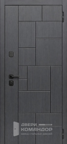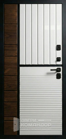 Объёмная геометрия на правой части полотна делает простую плоскость визуально сложной: рифлёные линии и прямоугольные модули создают ритм, как у архитектурных фасадов. Это не узор ради узора, а способ дать двери характер без лишних элементов.