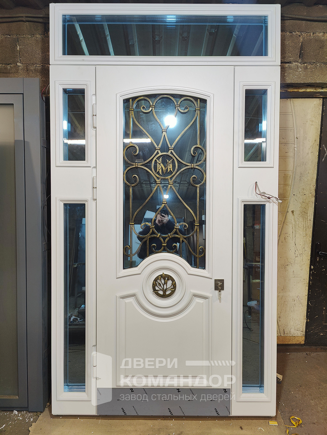 Современная входная дверь размером 86x205 см. на заказ с доставкой и установкой по цене 26450руб. Возможно изготовить по любым индивидуальным размерам. Также возможно боковые вставки и фрамугу в стиле и цвете двери. Изменение цвета отделки и фурнитуры не влияет на стоимость.
