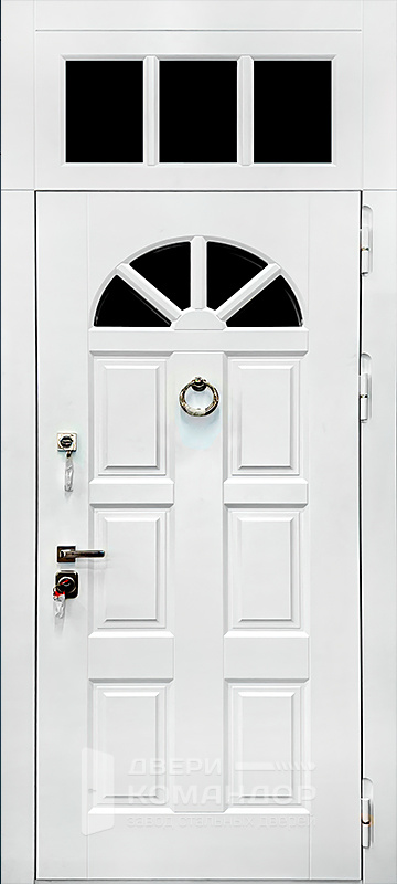 Создана для парадных входов частных домов, коттеджей и представительных офисов, эта высокая модель играет светом: верхняя фрамуга и остекление формируют яркий, «воздушный» портал. Крашеный по RAL МДФ с обеих сторон даёт ровную, плотную эмаль в бело-светлой гамме — легко моется, стойко переносит мелкие царапины и не желтеет при аккуратной эксплуатации; для улицы уместен козырёк. Выбирая входную дверь с фрамугой МДФ с двух сторон с фрамугами №63, вы получаете строгую симметрию филёнок и тонкие притворы без визуального шума. Стеклопакет добавляет дневного света и подчёркивает высоту проёма, два уплотнителя E+D умеряют сквозняки. Изготавливаем по вашим размерам и цвету RAL — чтобы вход выглядел цельно и «дорого» без излишней вычурности. Входная дверь с фрамугой МДФ с двух сторон с фрамугами №63 по выгодной цене от производителя с бесплатной доставкой и установкой в Москве, изготовление под любой размер вашего проёма, с возможностью изменить отделку, конструкцию и комплектацию.