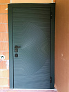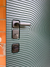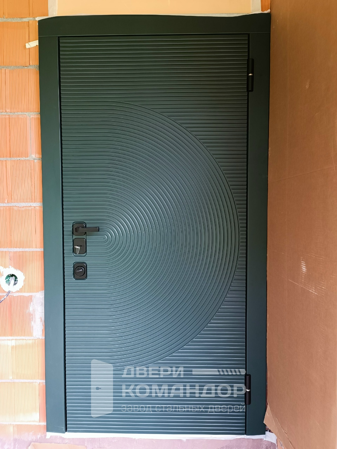 Эта «Малахит Термо» создана для частного дома: устанавливается на улицу, держит перепады и не теряет вида. Снаружи — глубокий малахитовый оттенок с концентрическими кругами и тонким горизонтальным рифлением: панель выглядит эффектно и хорошо скрывает случайные царапины и следы погоды. Внутри — спокойный белый с вертикальными каннелюрами: светлее в прихожей, легче поддерживать порядок. МДФ-накладки с обеих сторон дают дополнительную тишину и тепло, плотные контуры уплотнения и терморазрыв уменьшают промерзание и конденсат. Матовая черная фурнитура собрана в единую линию, изнутри — удобные поворотные фиксаторы. Усиленная замковая зона с несколькими ригелями и противосъёмным штырем фиксирует полотно жестко и без люфтов.