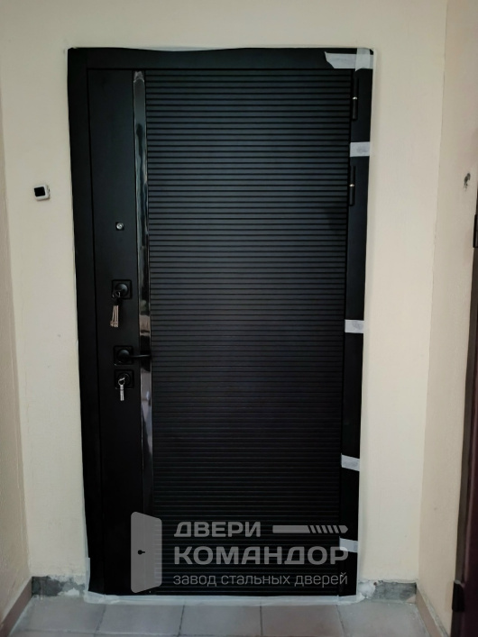 Эта дверь создана для квартиры и сразу задаёт тон подъездному интерьеру: снаружи — глубокий графит с горизонтальным рельефом ламелей, выглядит строго и не марко; внутри — мягкий белый софт, визуально расширяющий коридор и легко сочетающийся с любой отделкой стен. Вертикальная контрастная вставка со стороны замков собирает взгляд и подчёркивает геометрию полотна. В описании уместно вспомнить о палермо софт белом от Дверного Континента: спокойная эстетика без вычурности, но с характером. МДФ-панели устойчивы к мелким царапинам и выцветанию, их просто протирать, а покрытие держит бытовую химию. Фурнитура в чёрном мате, два раздельных замка и внутренняя вертушка дают удобство в повседневном использовании. При желании интегрируем видеодомофон и изготовим доборы/наличники в цвет.
