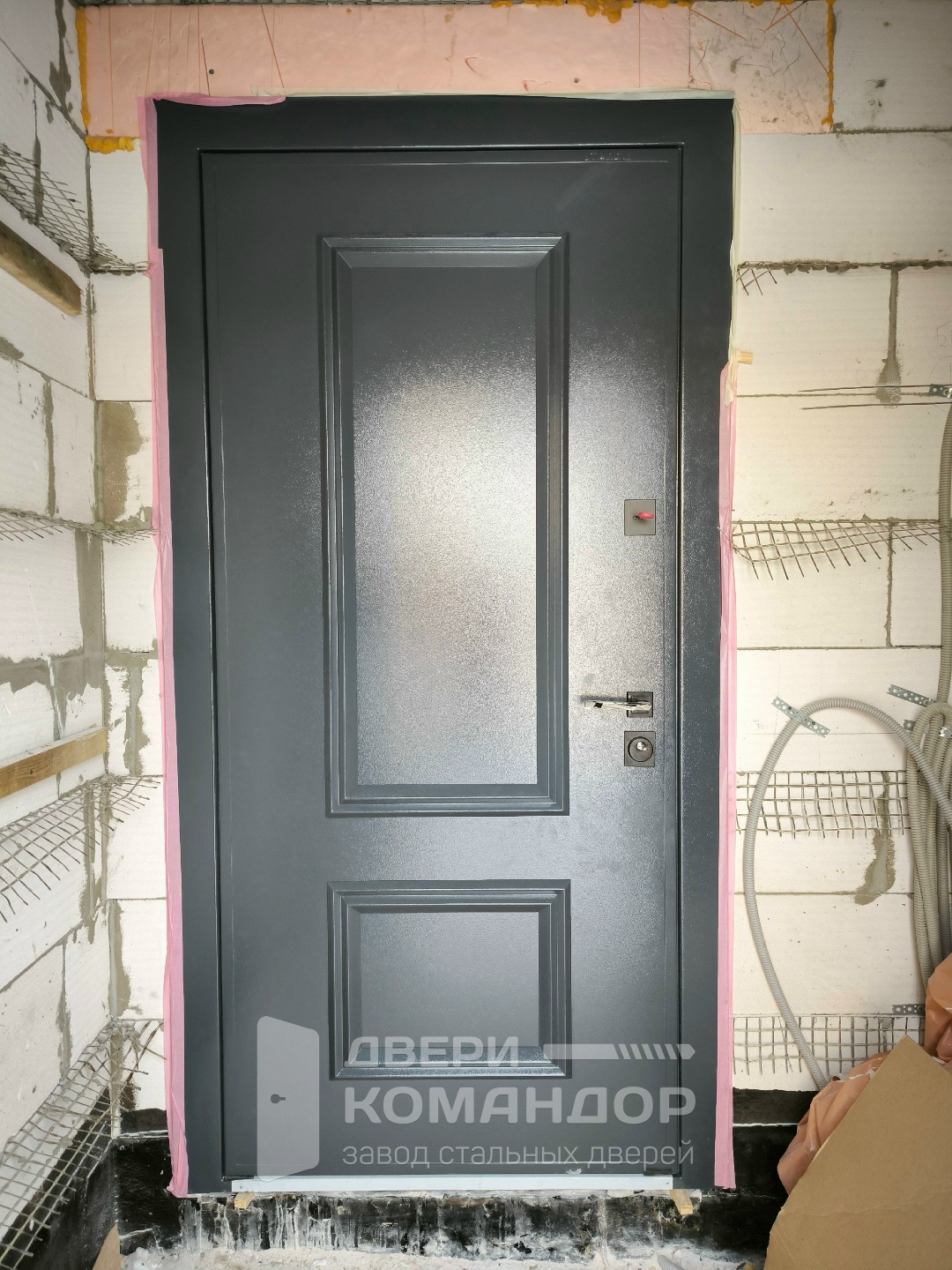 Наружная сторона в молотковой текстуре смотрится строго и живуче: такая поверхность спокойно переносит капризы погоды и не боится мелких следов от ключей — оптимально для частного дома с выходом на улицу. Внутри — ровная МДФ-панель светлого тона: прихожая кажется просторнее, следы от ладоней легко убрать мягкой салфеткой. В стардис термо используется тёплая конструкция с терморазрывом, поэтому в холодный сезон у порога меньше конденсата и сквозняков. Двойной контур уплотнения даёт плотный прижим, дверь закрывается мягко и без дребезга. Квадратные накладки и лаконичная ручка подчёркивают прямые линии полотна, не споря с отделкой. Предусмотрена установка видеодомофона и изготовление доборов и наличников в общий тон — проём выглядит аккуратно и завершённо.