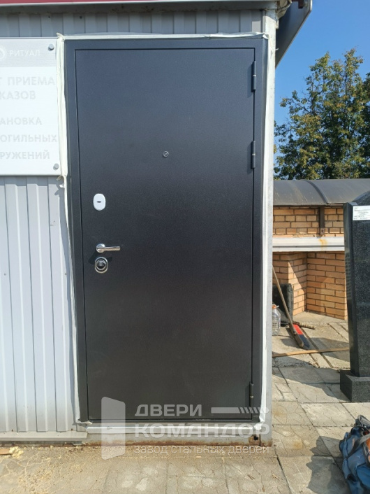 «Спартак» — практичная входная дверь для квартиры или подъезда: снаружи — прочное порошковое покрытие цвета тёмного серебра с характерной шагренью, устойчивой к царапинам и капризам погоды на лестничной площадке, внутри — светлая МДФ под белёный дуб с аккуратной рельефной фрезеровкой, которая визуально освежает прихожую и не боится ежедневной уборки. По фурнитуре всё по-взрослому: два раздельных замка с цилиндрами, внутренний поворотник для быстрого запирания и обзорный глазок. Короб и притвор с уплотнителем дают плотный прижим, тише хлопает и лучше держит запахи и шум из подъезда. Сочетание строгого металла и тёплой древесной текстуры выглядит сдержанно и дорого — как раз то, что хочется видеть у входа домой.