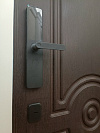 Эта дверь создана для квартиры: снаружи — благородная темно-шоколадная панель с глубокой фрезеровкой и классическим «медальоном», которая сразу добавляет статусности площадке, внутри — спокойная белая плоскость с тонким кантом для светлого, минималистичного интерьера. Обе стороны выполнены из МДФ: покрытие не боится ежедневных прикосновений, легко протирается, не выгорает в подъезде и долго сохраняет фактуру. Биометрический замок с удобным считывателем отпечатка и лаконичной ручкой избавляет от связки ключей и позволяет быстро попасть домой, а изнутри — повернуть фиксатор одним движением. Черная матовая фурнитура подчеркивает контраст и современный характер, аккуратный глазок держит ситуацию под контролем. Усиленные петли и плотные контуры прилегания отвечают за тишину и уверенное закрывание, короб формирует аккуратную рамку без лишних линий.